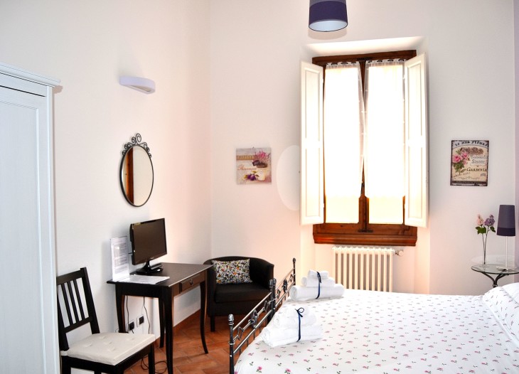 La camera ‘’Glicine’’ offre colori tenui e riposanti. Dotata di letto matrimoniale in ferro battuto sdoppiabile, aria condizionata/ riscaldamento, tv led, accesso Wi-Fi internet gratuito e bagno con doccia esterno alla camera ma raggiungibile in 5 passi! Nel linguaggio dei fiori il glicine è segno di disponibilità e prova di amicizia.